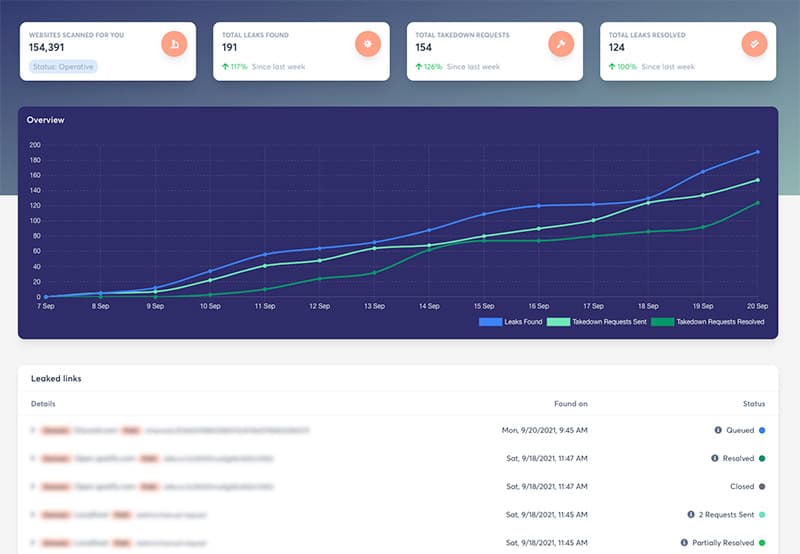 Evey time a leak is found, your dashboard will be updated in real time with all of our findings.